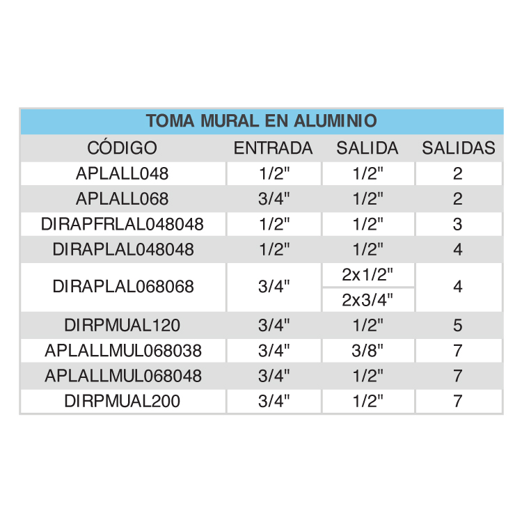 Toma mural en aluminio